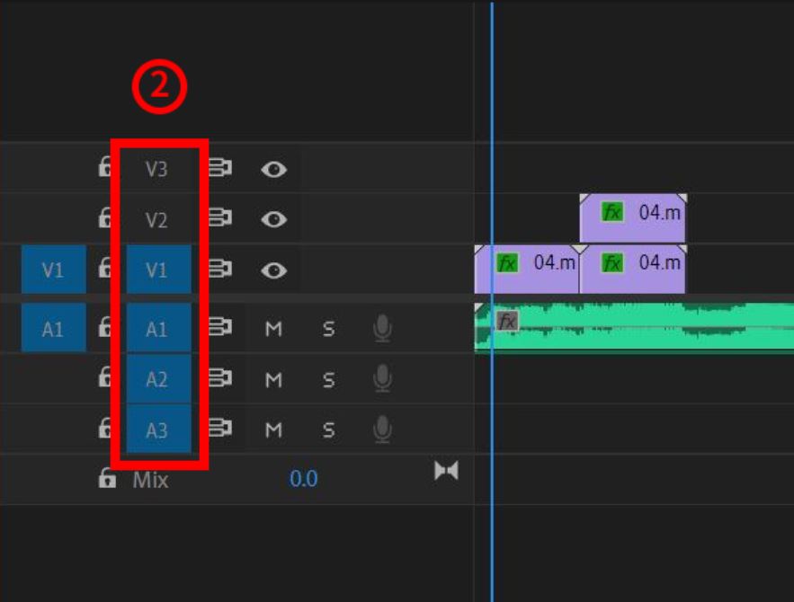위 사진에서 V1과 V2 트랙 타켓팅이 활성화 되어있습니다!